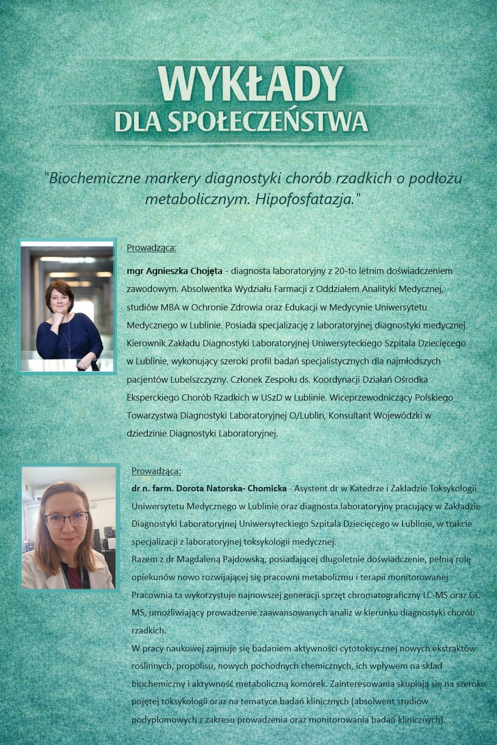 Wykłady dla Społeczeństwa - luty - "Biochemiczne markery diagnostyki chorób rzadkich o podłożu metabolicznym. Hipofosfatazja."