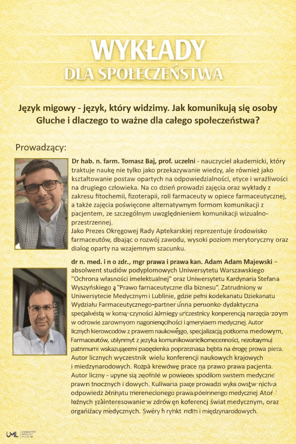 Wykłady dla społeczeństwa - marzec 2026 - „Język migowy - język, który widzimy. Jak komunikują się osoby Głuche i dlaczego to ważne dla całego społeczeństwa?”
